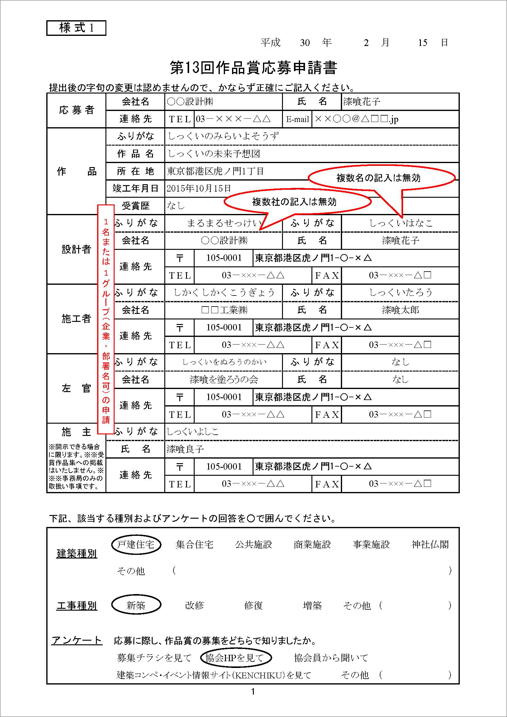 日本漆喰協会事務局まで郵送してください。 *「作品賞応募申請書」ダウンロード:【PDF版】【Excel版】 【申請書のご入力・ご記入について】 ( 2 )提出先 |