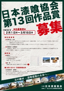 日本の伝統的な不燃建築仕上げ材である漆喰の普及、技術の向上を図り、安全で環境と人に優しい漆喰工法による建築文化を後世に継承して行くための一助となること、併せて漆喰関連業界の発展に寄与することを目的とし、社会的、文化的見地から特に優秀と認められる漆喰を使用した作品の表彰を行う。 |